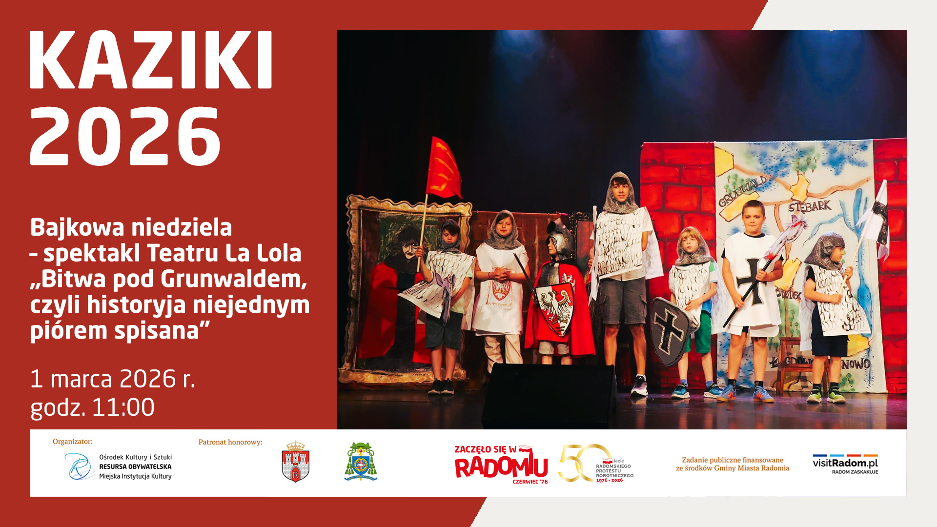 Tegoroczne Kaziki zainauguruje Bajkowa Niedziela! Już 1 marca o godz. 11.00 zaprosimy na spektakl Teatru La Lola „Bitwa pod Grunwaldem, czyli historyja niejednym piórem spisana”....