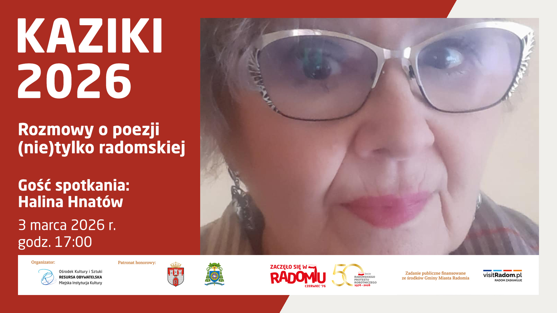 Gościem marcowego spotkania będzie Halina Hnatów, członkini Grupy Literackiej Tygiel oraz aktorka Teatru Resursa. Prowadzenie: dr Adrian Szary. Słodki poczęstunek zapewnia piekarnia Fogiel&Fogiel. Wstęp wolny